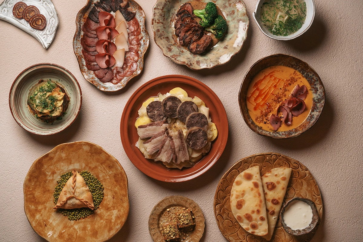 В списке других важных «достопримечательностей» татарской кухни — конское сало, сыровяленая конина казылык и знаменитый вяленый гусь. В «Чирэме» все найдется. Вдобавок национальное меню «Татарча» сейчас действует в казанском ресторане Lulua. Бренд-шефа Fine Group, в которую входят оба проекта, Артема Лаптева два последних года признают лучшим шефом Татарстана по версии премии Wheretoeat Tatarstan.
